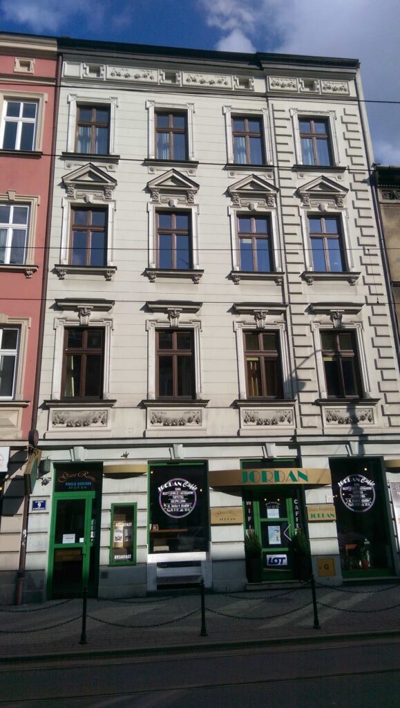 Realizacja w Hotelu Jordan przy ul. Długiej 9 w Krakowie to przykład renowacji okien przeprowadzonej etapami, bez konieczności wyłączania obiektu z bieżącego funkcjonowania. Prace były realizowane sukcesywnie, w miarę dostępności pokoi, co pozwoliło zachować ciągłość pracy hotelu i komfort jego gości.